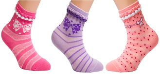 Носки с рюшкой для девочек. 85%х\б + 12%па + 3%эл. Расцветки разные. В упаковке 40 штук одного размера. Цена указана за упаковку. При изменении размера цена изменяется.