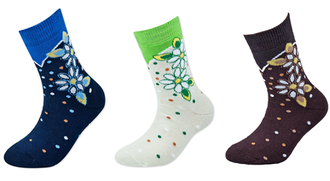 Носки "Цветы". 85%х\б + 12%па + 3%эл. Женские зимние носки, махровые с внутренней стороны, на паголенке рисунок "цветы". В упаковке 40 штук одного размера, расцветки ассорти. Цена указана за упаковку.